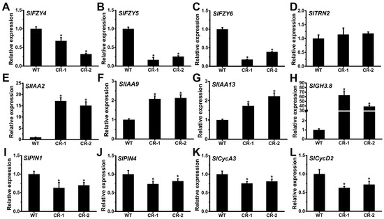 2.4. Knocking out of SlYABBY2a Alters the Auxin Signaling Pathway in the Fruit Septum