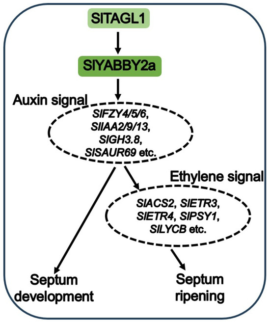Shen H, Luo B, Ding Y, Xiao H, Chen G, Yang Z, Hu Z, Wu T. The YABBY Transcription Factor, SlYABBY2a, Positively Regulates Fruit Septum Development and Ripening in Tomatoes. International Journal of Molecular Sciences. 2024; 25(10):5206. https://doi.org/10.3390/ijms25105206