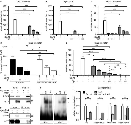 2.3. Tle4 Interacts with Hes1 to Repress Sox10-Dependent Activation of Maturity Factors and Myelin Proteins
