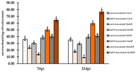 4.7. Validation of Cell Wall Methylesters in Mock and TuMV-Infected Col-0, rbohD, rbohF, and rbohD/F Leaves