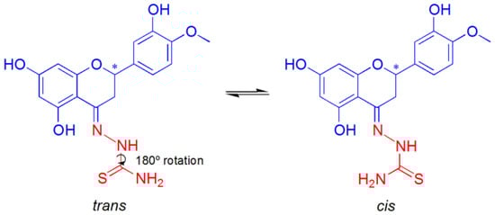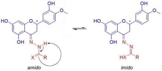 Schiff base ligand tautomerism. X represents an atom of O or S. The asterisk indicates the stereogenic carbon atom in position 2 of the C ring of hesperetin.