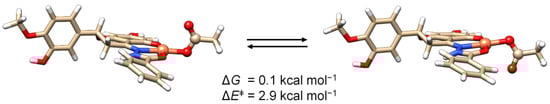 For the sake of accuracy, the two exchanging partners in this equilibrium (i.e., H2O and AcO−) were solvated using a mixed explicit/continuum method, according to Bryantsev et al. []. The calculated ΔGaq was 2.0 kcal mol−1, suggesting that the species are in equilibrium in solution at room temperature.