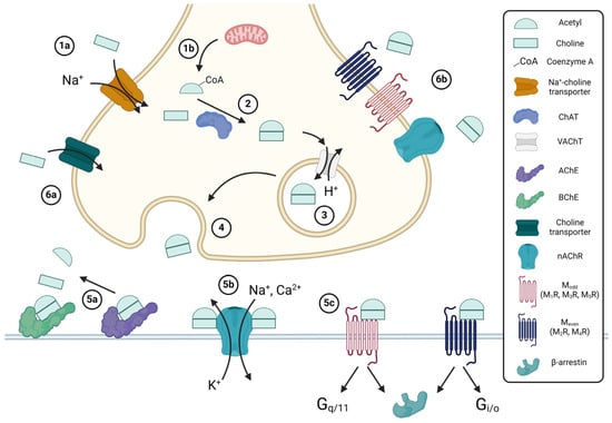 - Sam, C.; Bordoni, B. Physiology, acetylcholine. In StatPearls [Internet]; StatPearls Publishing: Treasure Island, FL, USA, 2022. [Google Scholar]