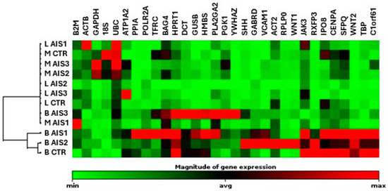 25]; therefore, idoneous references for AIS musculoskeletal tissues should be prospectively defined, since a gene consistently expressed in one cell type may vary in another.
