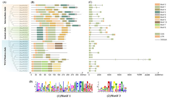 2.4. Gene Structure and Conserved Motifs of WOXs