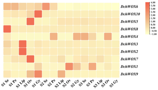 Chicago/Turabian StyleLuo, Xiaoting, Qinyao Zheng, Xin He, Xuewei Zhao, Mengmeng Zhang, Ye Huang, Bangping Cai, and Zhongjian Liu. 2024. "The Evolution of the WUSCHEL-Related Homeobox Gene Family in Dendrobium Species and Its Role in Sex Organ Development in D. chrysotoxum" International Journal of Molecular Sciences 25, no. 10: 5352. https://doi.org/10.3390/ijms25105352