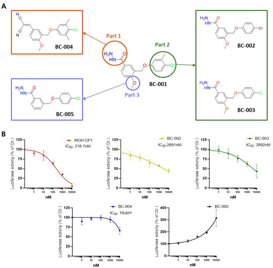 2.5. Structure–Activity Relationship Study of the Hit Compound BC-001, for Optimization