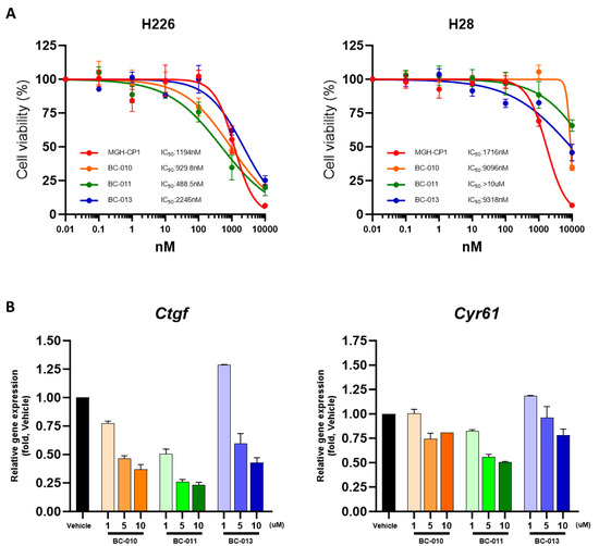2.8. Cell Viability and TEAD Target Gene Expression Assay of BC-010, BC-011, and BC-013