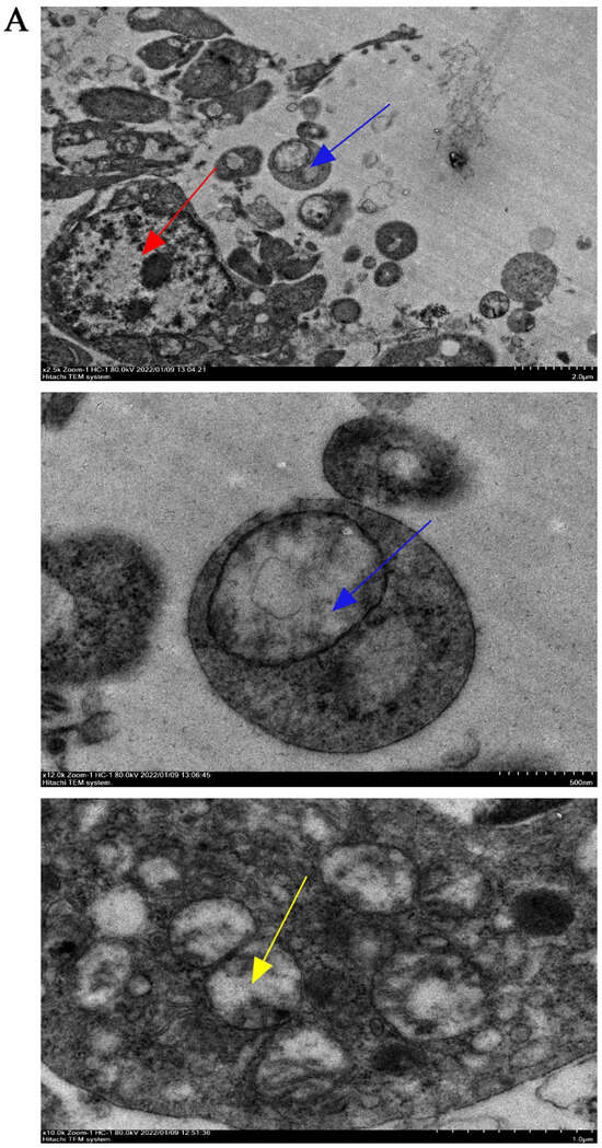 Transmission electron microscopy was used to observe the submicroscopic structure of atretic follicles. The atretic follicles showed nucleolysis and the loss of mitochondrial cristae. Additionally, mitochondria with disappearing cristae were observed to be phagocytosed by autophagosomes (Figure 4A).