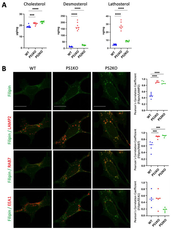 2.1. Deletion of PS1 or PS2 Induces Cellular Cholesterol Accumulation