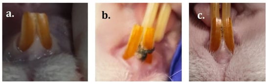 Animal experiments in periodontology are still necessary, and the obtained information is of solid scientific relevance. Animal models are superior to in vitro tests or clinical trials when addressing questions in the area of mechanisms of action and serve as a bridge between hypotheses and the real clinical situation. There is no single animal model that mimics all the characteristics of human periodontitis and its tissue architecture or healing. However, human studies do not allow for the complete evaluation associated with tissue harvesting necessary for microscopic analyses, the importance of which lies in defining the biological impact of regenerative methods and materials. Therefore, research on animal models is necessary to establish cause–effect relationships and, equally important, to test new regenerative devices and advanced therapies []. In rats, periodontal disease is an infectious process caused by periodontal pathogens resulting in specific lesions []. Thus, rodents are suitable for research targeting teeth or investigating the dynamics of oral inflammatory diseases, and the information gained in this way allows for the translation of basic science into applied research.