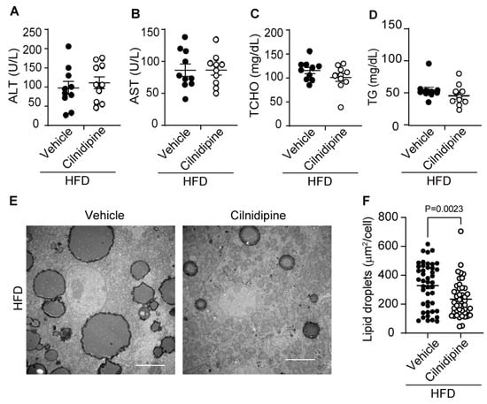 2.3. Treatment with Cilnidipine Improved HFD-Induced LDs