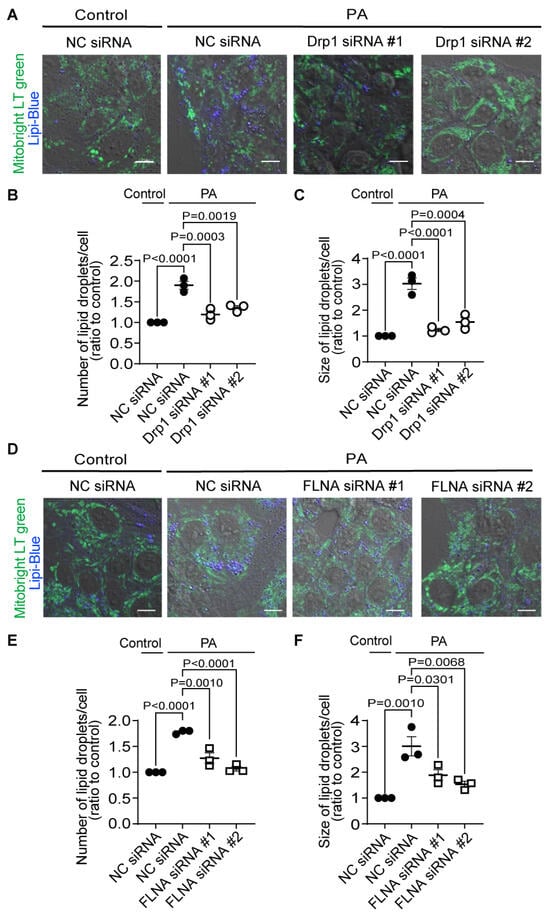 2.6. Knockdown of Drp1 and FLNA Suppressed LD Formation in HepG2 Cells