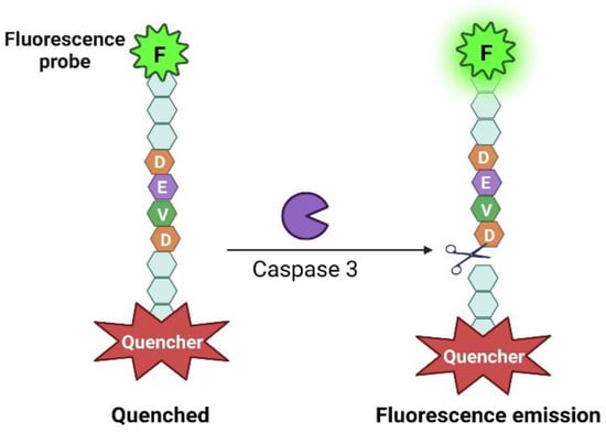 However, antibody-based assays have several limitations, emphasizing the need for continuous improvement in detection methods. These include their inability to fully capture the details of the steps involved in apoptosis, which is needed to develop a global understanding of the entire process. In addition, the lack of specificity in many of the commonly used caspase antibodies is a frequently encountered issue that can complicate the interpretation of experimental data and requires extensive, time-consuming validation [,,]. Due to the continuous expansion of investigations on caspases and the discovery of new targets and regulation mechanisms, many of which were previously unknown, the experimental utility of antibody-based assays as tools of scientific investigation is falling behind and becoming increasingly limited. Therefore, there is a growing demand to improve existing detection techniques and introduce new approaches that can overcome the limitations of conventional antibody-based assays. These new methods aim to offer a more thorough, detailed, and precise insight into caspase activities across various cellular environments [,,].