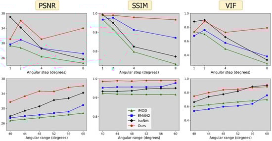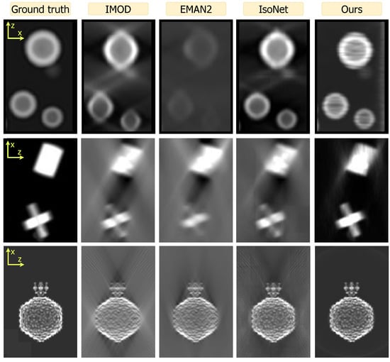 - Liu, Y.T.; Zhang, H.; Wang, H.; Tao, C.L.; Bi, G.Q.; Zhou, Z.H. Isotropic reconstruction for electron tomography with deep learning. Nat. Commun. 2022, 13, 6482. [Google Scholar] [CrossRef] [PubMed]