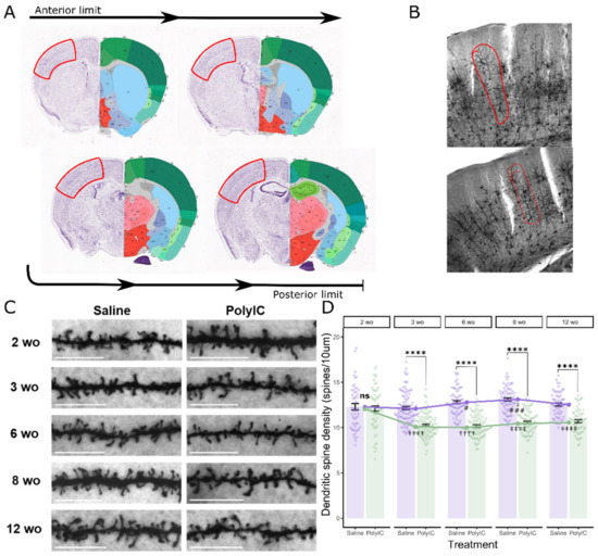 - Pekala, M.; Doliwa, M.; Kalita, K. Impact of maternal immune activation on dendritic spine development. Dev. Neurobiol. 2021, 81, 524–545. [Google Scholar] [CrossRef]