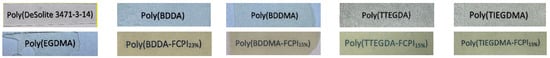 | Poly(EGDMA–FCPI15%) | Brittle | 130, 290 | ||