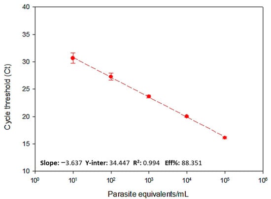 2.3. The Reportable Range of Viable T. cruzi Detection in the One-Step RT-qPCR Assay (Linearity Assay)