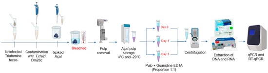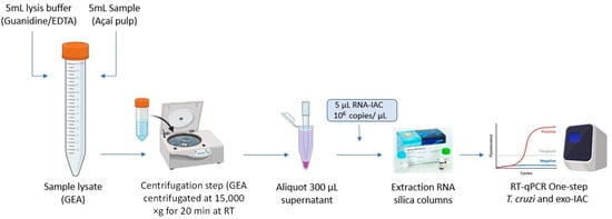 Faier-Pereira A, Finamore-Araujo P, Brito CRdN, Peres EG, de Lima Yamaguchi KK, de Castro DP, Moreira OC. The Development of a One-Step RT-qPCR for the Detection and Quantification of Viable Forms of Trypanosoma cruzi in Açai Samples from Areas at Risk of Chagas Disease through Oral Transmission. International Journal of Molecular Sciences. 2024; 25(10):5531. https://doi.org/10.3390/ijms25105531