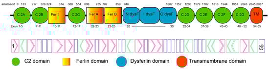 - Bulankina, A.V.; Thoms, S. Functions of Vertebrate Ferlins. Cells 2020, 9, 534. [Google Scholar] [CrossRef]