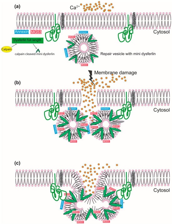 - Bansal, D.; Campbell, K.P. Dysferlin and the plasma membrane repair in muscular dystrophy. Trends Cell Biol. 2004, 14, 206–213. [Google Scholar] [CrossRef]