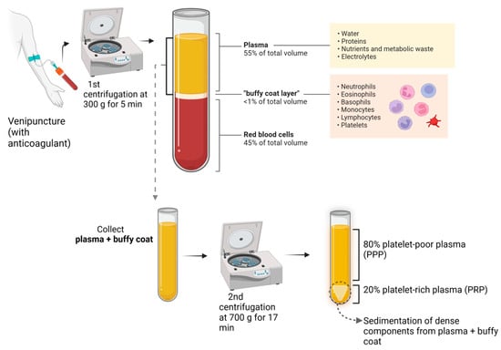 According to the International Olympic Committee, PRP is an autologous preparation derived from whole blood in which platelets are concentrated in a small fraction of the plasma [2] (Figure 1).