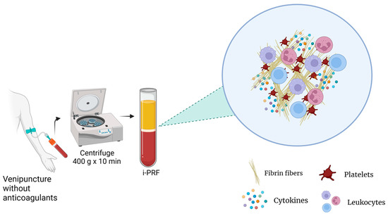 Currently, there are different types of PRP preparation methods for which parameters such as the number of centrifugation rounds, relative centrifugal force (RCF), and time can vary. This influences the platelet integrity, composition, and effectiveness of the product. Additionally, the variance among the methods and contents between PRP products results in different terminologies and results, making standardization and reproducibility challenging [3]. For instance, studies have reported that the anticoagulants used in PRP preparations may also interfere with several processes, such as wound healing [8]. For these reasons, platelet-rich fibrin (PRF), an alternative platelet concentrate, was developed with no additives (anticoagulants) and is produced under lower centrifugal forces (Figure 3). This protocol enhances the content and distribution of the cells and growth factors within PRF matrices. Furthermore, it enables injection in a manner similar to PRP, offering the added benefits of fibrin clot formation shortly after injection into the target tissue. Its feasibility is attributed to its easy handling and a growth factor content relatively comparable to those of certain PRP products [15].