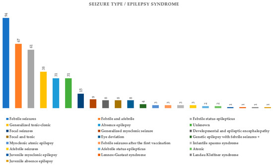 This study was approved by the institutional boards and Ethics Committees of the National & Kapodistrian University of Athens and the St. Sophia’s Children’s Hospital (approval number is 12160/23-05-16). Written informed consent was obtained from all participants or their legal guardians. The study’s cohort included 343 patients (167 female and 176 male) referred by physicians in hospitals and tertiary care centers from the Hellenic territory, between 2017 and 2023. Positive family history for specific neurologic disorders was disclosed in 89 cases and is summarized in Table 3. The one common feature of all patients was the onset of seizures, at a mean age of 17 months (range from birth to 15 years old).