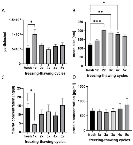4.8. Effect of Freezing–Thawing Cycles on EVs