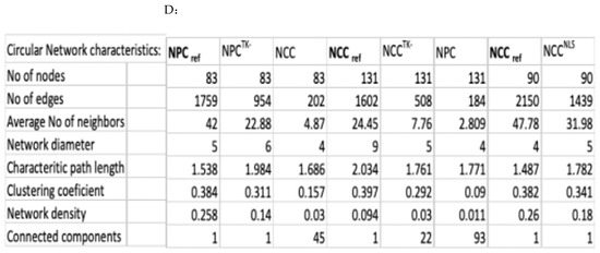 We used the following circular network characteristics from Cytoscape [29] (see Supplementary Materials for further details).