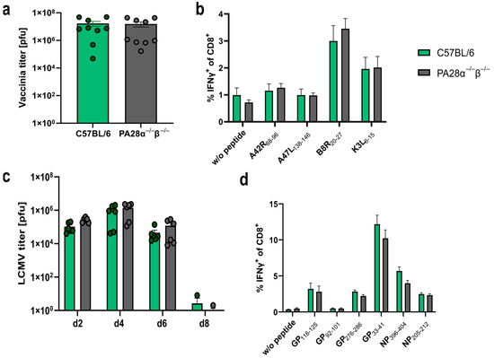 2.3. Immune Response after Vaccinia or LCMV Infection Is Not Altered in PA28α−/−β−/− Mice