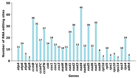 RNA-editing sites in different coding genes of P. montana var. thomsonii.