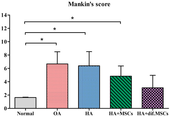 Cartilage damage scores based on the Mankin criteria (* p < 0.01).