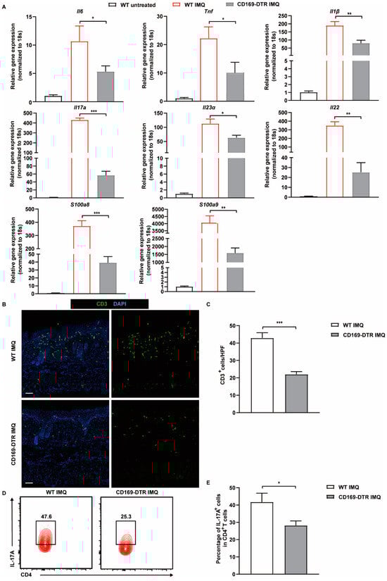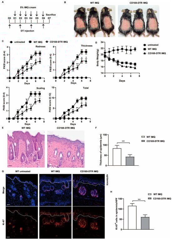 2.2. Depletion of CD169+ Macrophages Inhibits IMQ-Induced Psoriasis