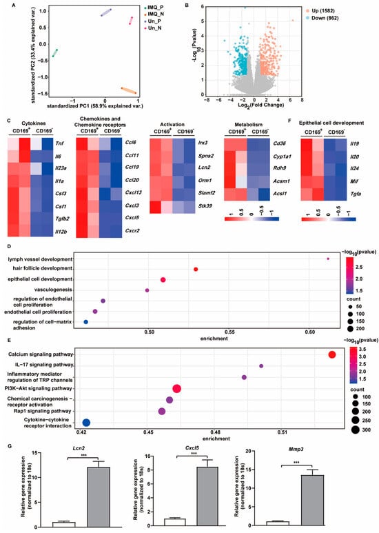 2.4. CD169+ Skin Macrophages Exhibit Unique Gene Expression Profiles upon IMQ Stimulation