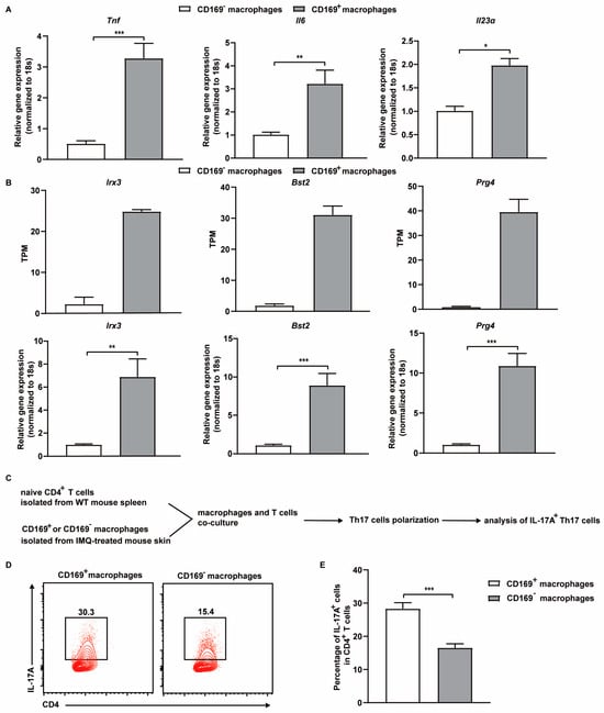 2.5. CD169+ Skin Macrophages Promote Th17 Cell Differentiation Ex Vivo