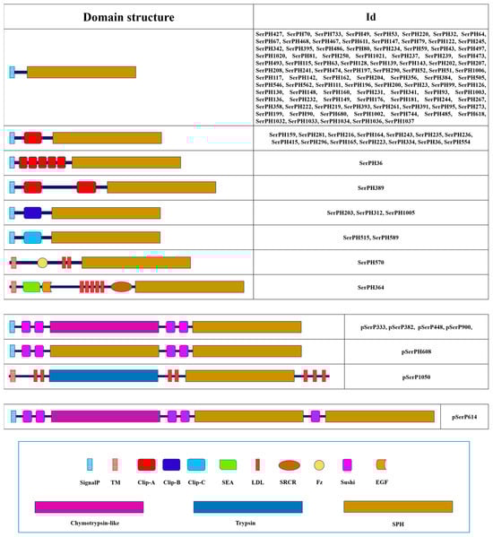 | SerPH364 | SEA; EGF; LDL; SRCR | S | D | E | D | R | R | SPH | 15 | 52 | 7 | 52 | 27 | 16 | 29 |