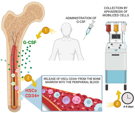 Over the past decades, apheresis has become a standard procedure in clinical hematology, providing HSCs for hematopoietic reconstitution after myeloablative chemotherapy. For this reason, and due to the reduced proportion of HSCs in peripheral blood (hovering at 0.04%), G-CSF is routinely utilized before apheresis to mobilize HSCs from BM to PB [46].