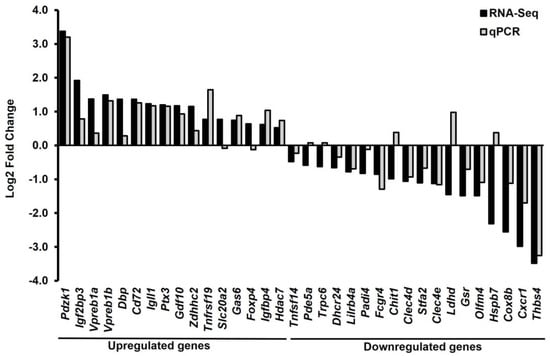 2.2. The Validated Genes by the qPCR Data Were Consistent with the RNA-Seq Data