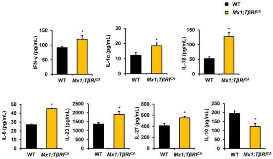 2.5. Proinflammatory Markers Were Elevated in Mx1;TβRICA Mice