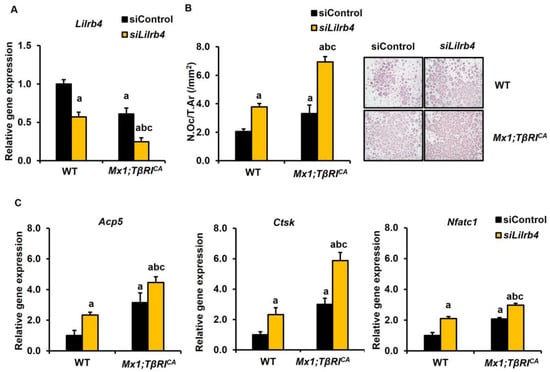 2.3. DEGs Were Expressed in Osteoclast Differentiation Pathway in Mx1;TβRICA Mice