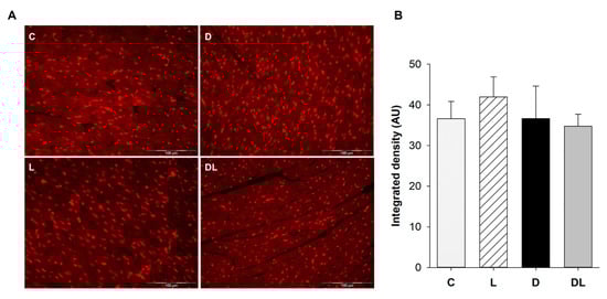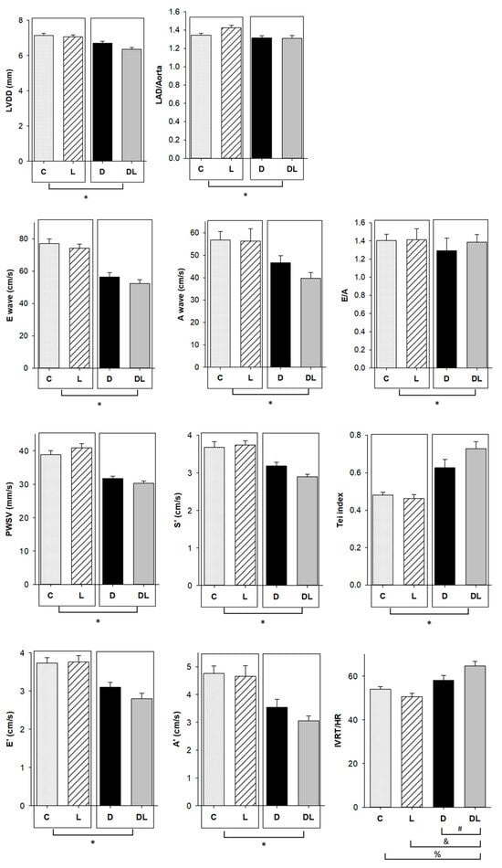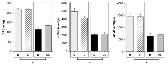 | C (n = 7) | L (n = 8) | D (n = 8) | DL (n = 8) | pL | pD | pDxL | |