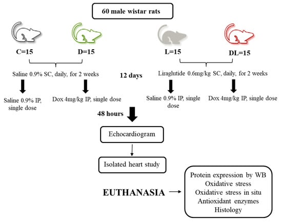Tonon CR, Monte MG, Balin PS, Fujimori ASS, Ribeiro APD, Ferreira NF, Vieira NM, Cabral RP, Okoshi MP, Okoshi K, et al. Liraglutide Pretreatment Does Not Improve Acute Doxorubicin-Induced Cardiotoxicity in Rats. International Journal of Molecular Sciences. 2024; 25(11):5833. https://doi.org/10.3390/ijms25115833