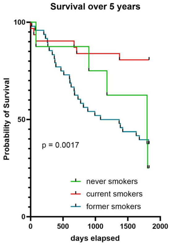 - Nielsen, A.O.; Lange, P.; Hilberg, O.; Farver-Vestergaard, I.; Ibsen, R.; Løkke, A. COPD and Smoking Status—It Does Matter: Characteristics and Prognosis of COPD According to Smoking Status. Chronic Obstr. Pulm. Dis. J. COPD Found. 2024, 11, 56–67. [Google Scholar] [CrossRef] [PubMed]