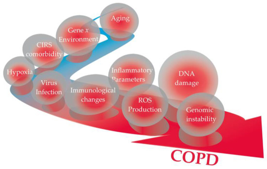 - Agusti, A.; Melen, E.; DeMeo, D.L.; Breyer-Kohansal, R.; Faner, R. Pathogenesis of chronic obstructive pulmonary disease: Understanding the contributions of gene–environment interactions across the lifespan. Lancet Respir. Med. 2022, 10, 512–524. [Google Scholar] [CrossRef] [PubMed]