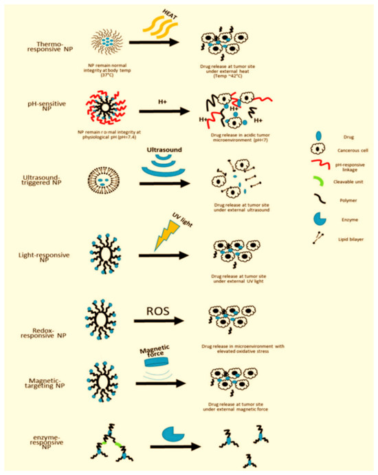 - Singh, A.K.; Yadav, T.P.; Pandey, B.; Gupta, V.; Singh, S.P. Engineering Nanomaterials for Smart Drug Release. Appl. Target. Nano Drugs Deliv. Syst. 2019, 411–449. [Google Scholar] [CrossRef]