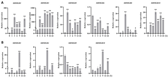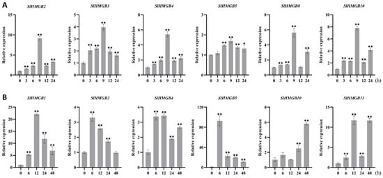 Zheng, J.; Tang, H.; Wang, J.; Liu, Y.; Ge, L.; Liu, G.; Shi, Q.; Zhang, Y. Genome-Wide Identification and Expression Analysis of the High-Mobility Group B (HMGB) Gene Family in Plant Response to Abiotic Stress in Tomato. Int. J. Mol. Sci. 2024, 25, 5850. https://doi.org/10.3390/ijms25115850