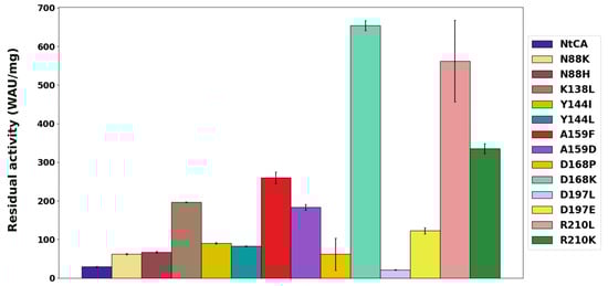 Activities of NtCA and single mutants after incubation for an hour at 30 °C.