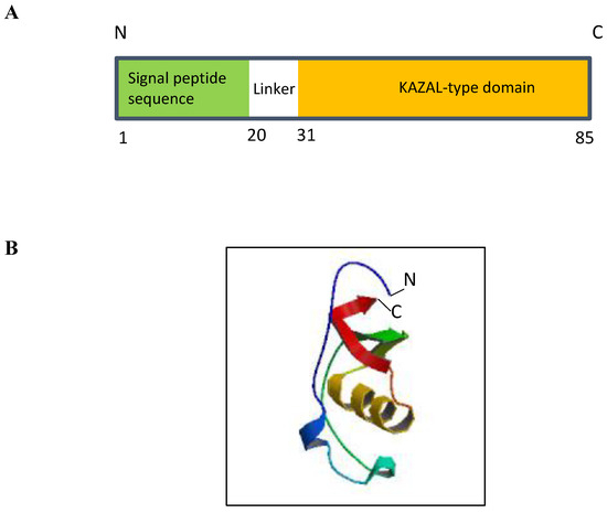- Papamokos, E.; Weber, E.; Bode, W.; Huber, R.; Empie, M.W.; Kato, I.; Laskowski, M., Jr. Crystallographic refinement of Japanese quail ovomucoid, a Kazal-type inhibitor, and model building studies of complexes with serine proteases. J. Mol. Biol. 1982, 158, 515–537. [Google Scholar] [CrossRef] [PubMed]