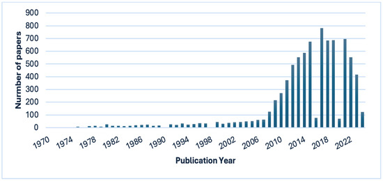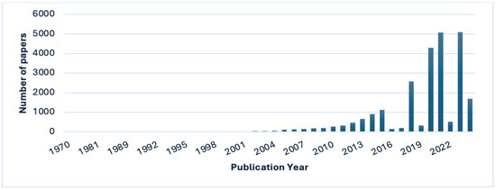 Bar chart of the number of publications per year after searching for “microvesicles” in the PubMed search engine (search was performed on 27 March 2024).